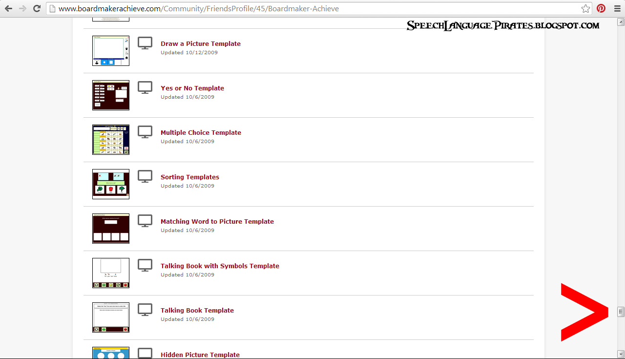 ***Side note – if you’ve recently installed Boardmaker on your computer and your operating system is Vista, then the images will not load correctly for you. But, there is a fix! Go to the Start Menu>Programs>Mayer Johnson>Check for Updates. It will give you an update for the installation process which will put all the necessary items where they belong. Then, your power templates will work as they should. If you have Vista or a late Windows operating system, you might want to try checking for updates before you use the power templates and get frustrated as to why they won’t work. Not like I’m speaking from experience or anything.